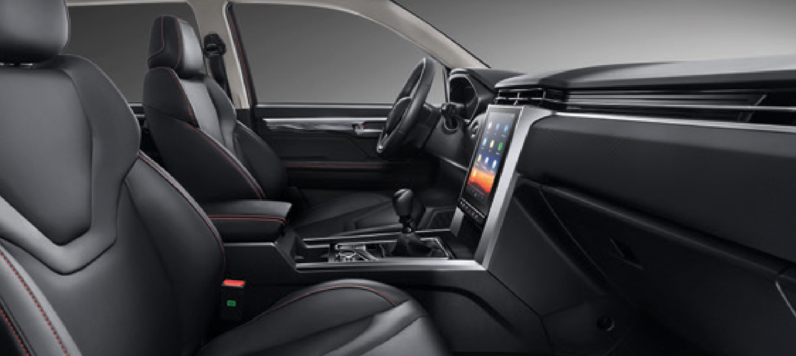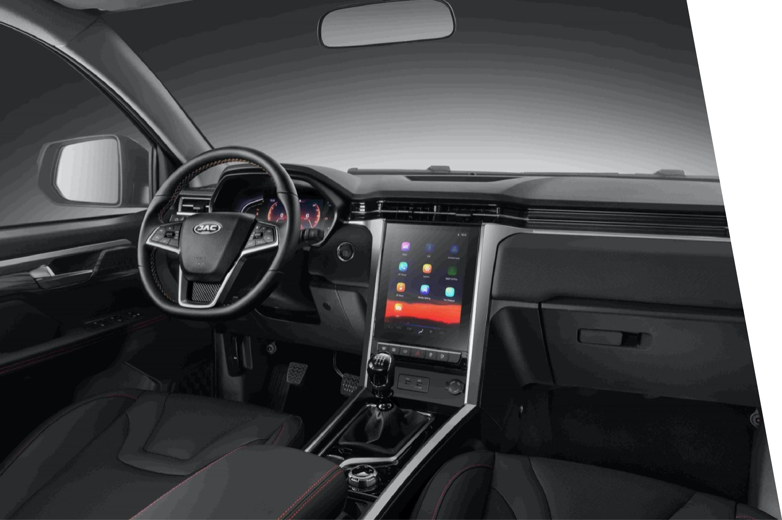 El interior del JAC T8 PRO Frison redefine lo que debe ser una pick-up moderna. Su cabina doble ofrece amplitud y refinamiento, destacando por sus asientos de cuero, apoyabrazos trasero con portavasos, y un diseño envolvente que mejora la experiencia de conducción. Todo ha sido pensado para ofrecer comodidad tanto al conductor como a los pasajeros, incluso en largas jornadas de trabajo o aventura.