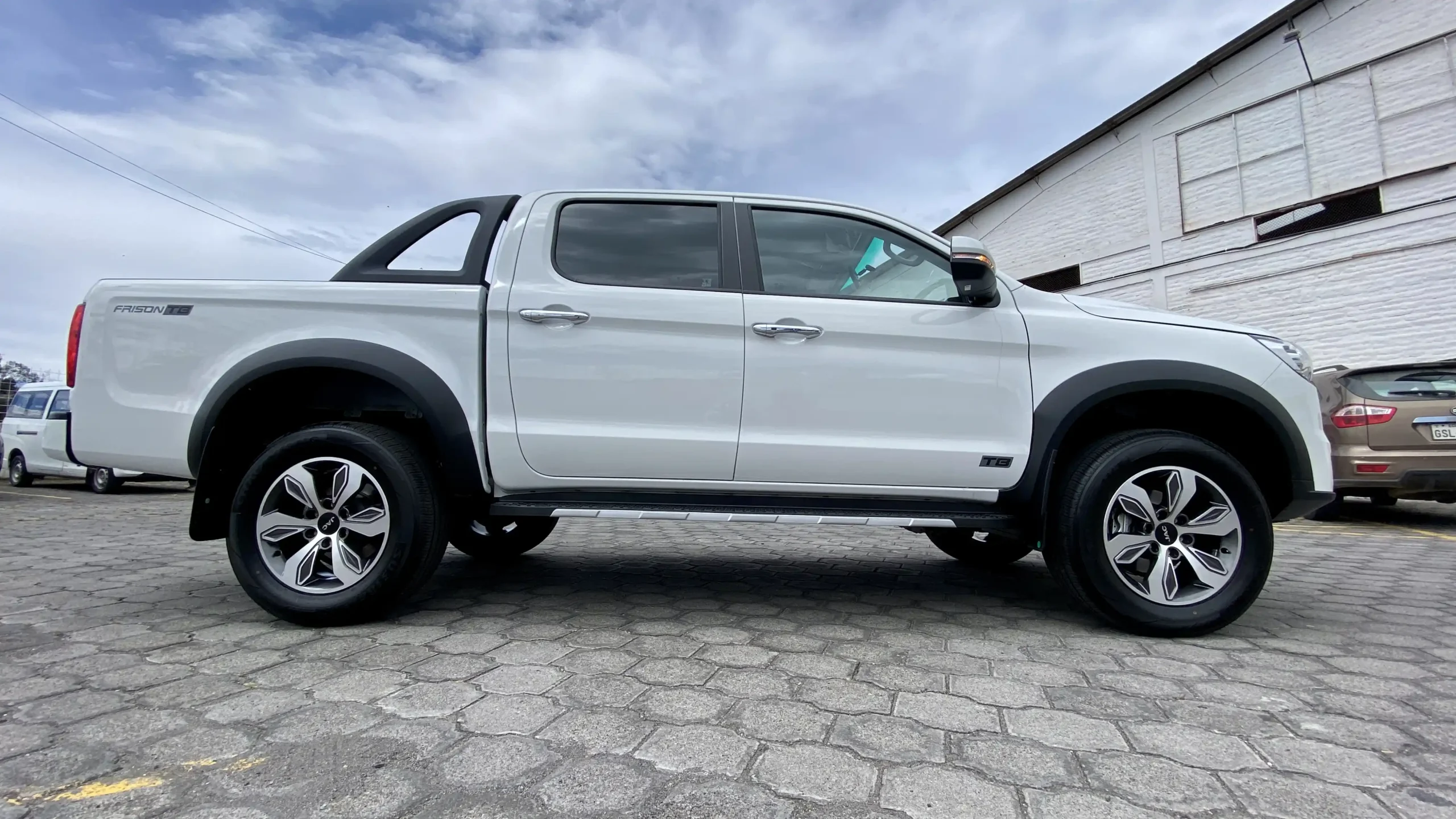 El JAC T8 Frison impone presencia desde cualquier ángulo gracias a su diseño robusto, detalles modernos y acabados pensados para destacar. Su carrocería de doble cabina combina líneas dinámicas con una estructura sólida, ideal para enfrentar todo tipo de terreno con estilo. Los aros de aluminio de 18”, faros con luces LED diurnas y el capó con amortiguadores reflejan su enfoque en funcionalidad y estética.