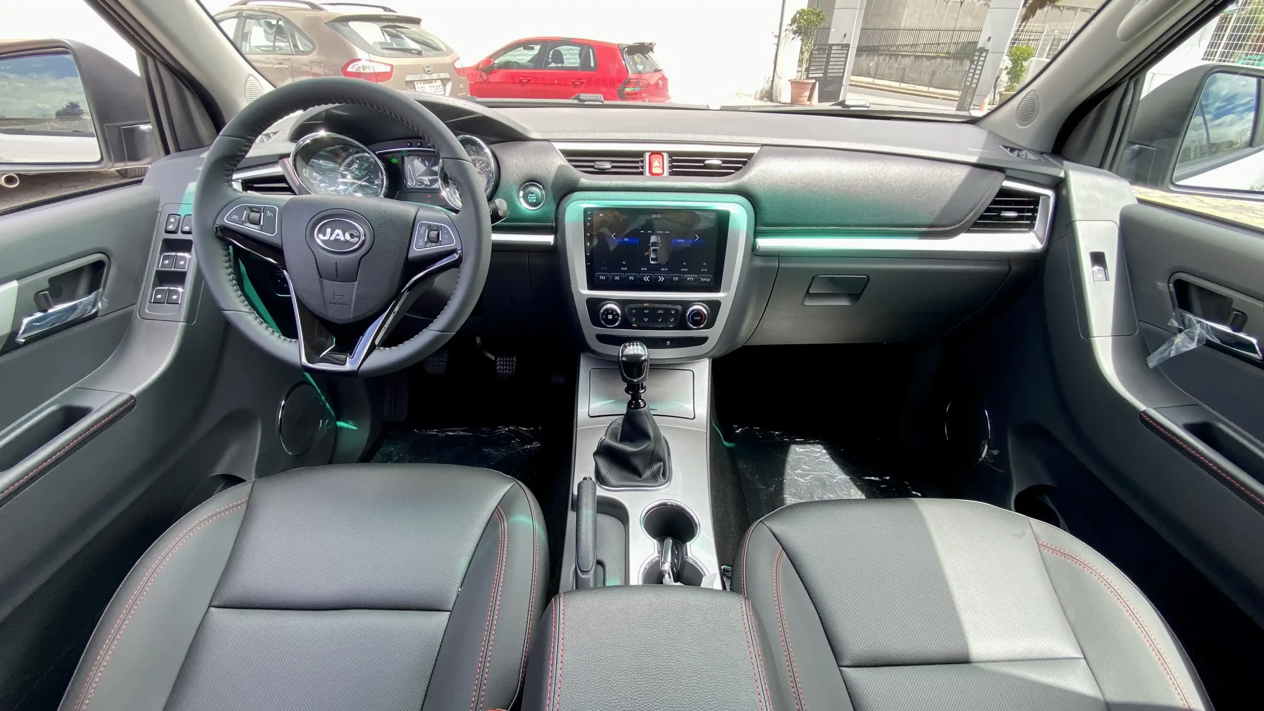 El JAC T8 Frison no solo es fuerte por fuera, también está equipado con tecnología que mejora cada trayecto. Integra una pantalla táctil de 9”, cámara de reversa, control crucero, sensores de retroceso, y sistema de monitoreo de presión de neumáticos (TPMS), facilitando la conducción tanto en carretera como en ciudad. Además, su volante multifunción en cuero, aire acondicionado con salidas traseras, y asientos forrados en cuero refuerzan la experiencia de confort y control a bordo.