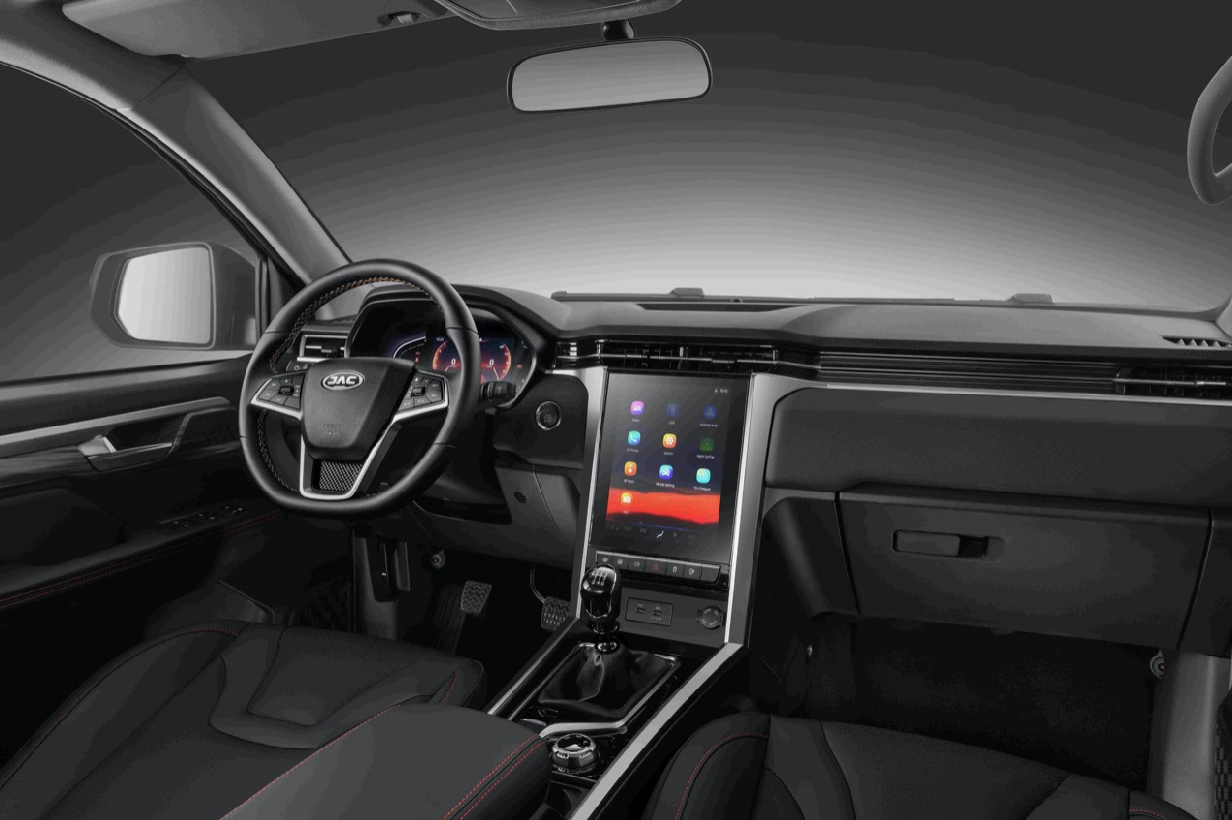El interior del JAC T8 Frison ha sido diseñado para ofrecer una experiencia de conducción cómoda, intuitiva y conectada. Su cabina doble con asientos de cuero brinda espacio y elegancia, mientras que el volante multifuncional, los mandos al volante y la llave inteligente con encendido por botón suman practicidad y control total al alcance del conductor.