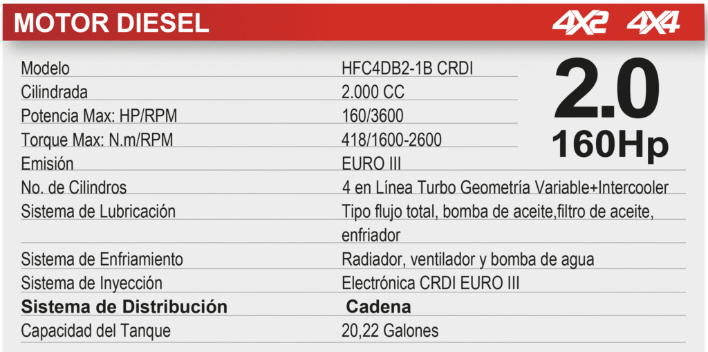 Con 160 HP y 418 Nm de torque, el JAC T8 Frison entrega una respuesta contundente gracias a su motor turbodiésel CRDI de geometría variable, diseñado para soportar carga, tracción y exigencia sin comprometer eficiencia. Su sistema 4×4 y transmisión de 6 velocidades aseguran desempeño en ciudad, carretera o terrenos difíciles, haciendo de esta pick-up una herramienta poderosa, confiable y lista para producir.