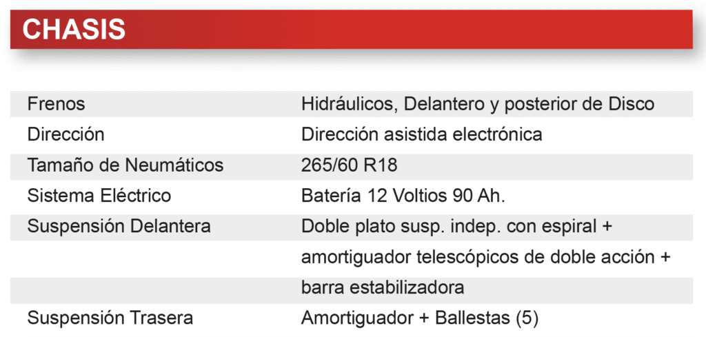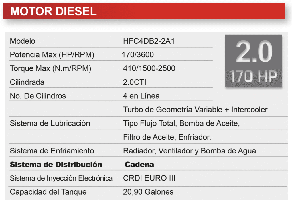 El JAC T9 Frison Diésel es sinónimo de fuerza inteligente. Está impulsado por un motor 2.0 CTI con turbo de geometría variable + intercooler, que entrega 170 HP a 3.600 rpm y un torque de 410 Nm entre 1.500 y 2.500 rpm, ofreciendo una respuesta inmediata tanto en ciudad como en condiciones off-road. Este tren motriz está homologado bajo normativa EURO III, optimizando el equilibrio entre rendimiento, consumo eficiente y confiabilidad mecánica.