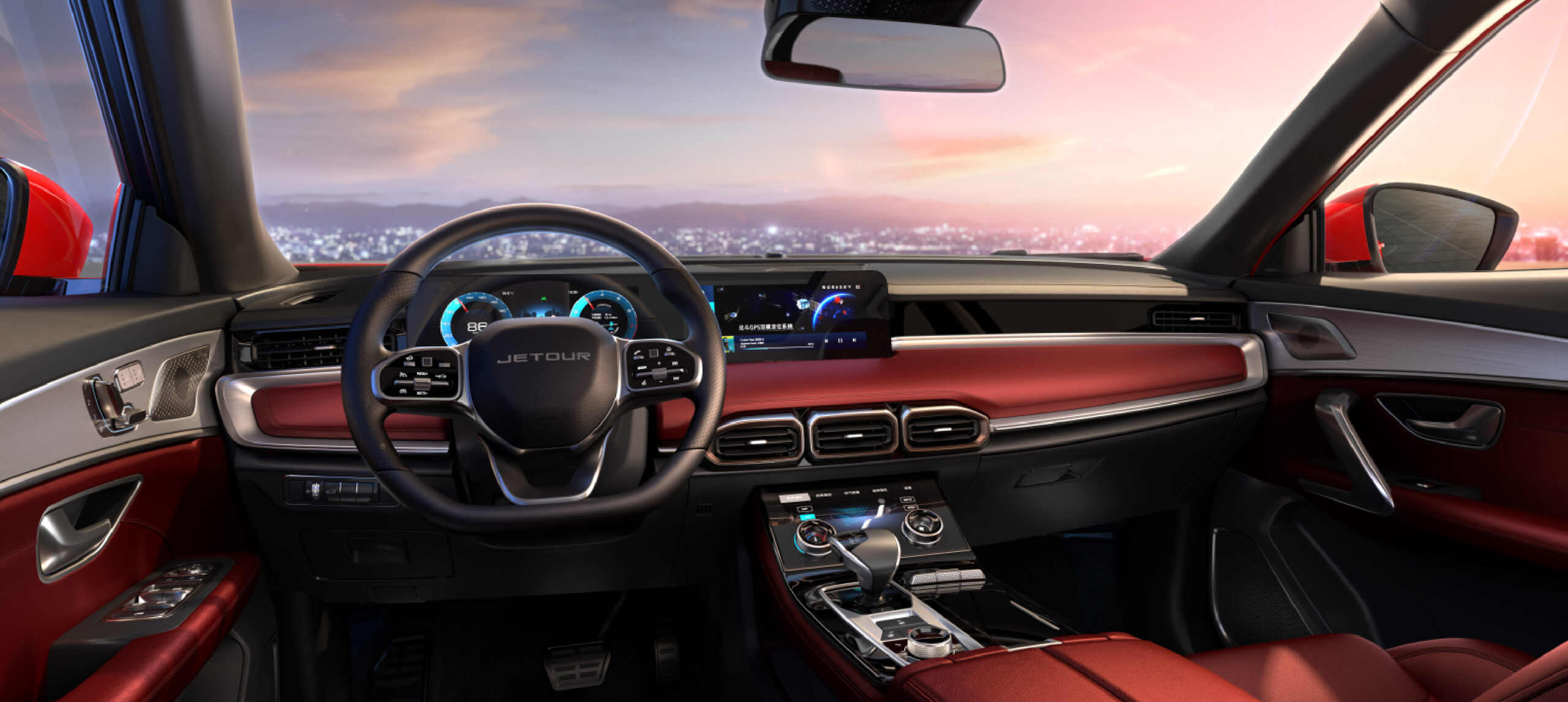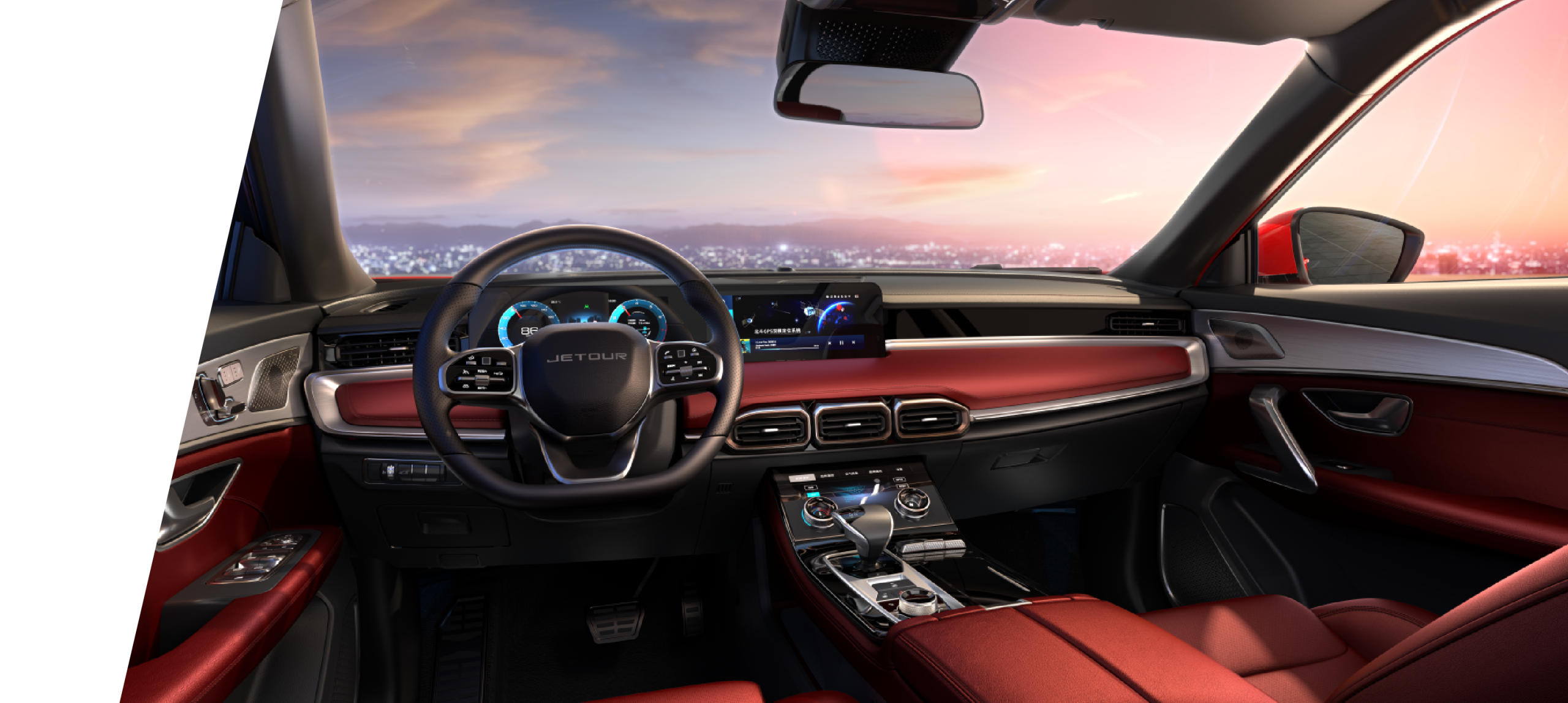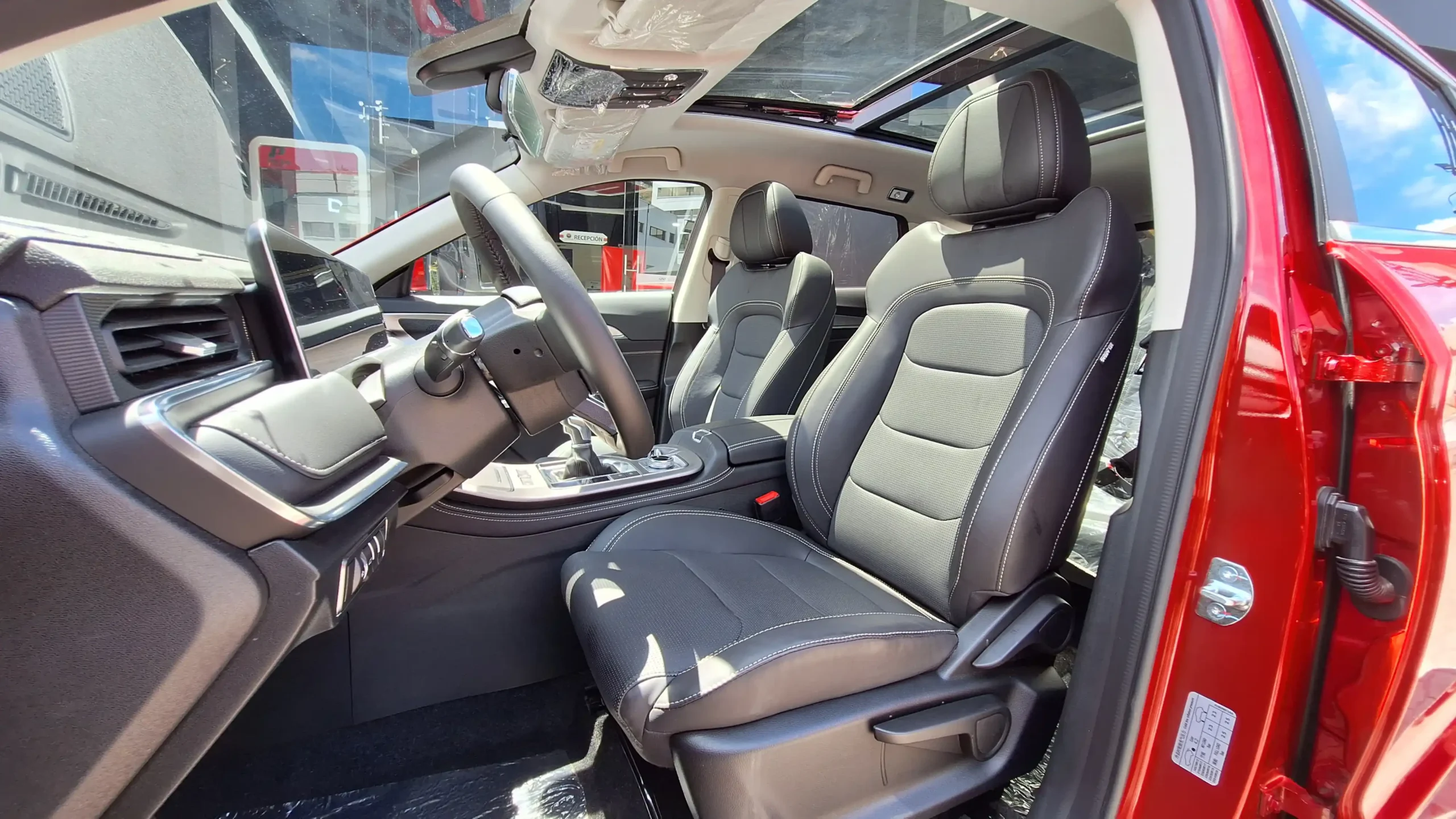 El Jetour X70 PLUS redefine el concepto de SUV familiar con un habitáculo para 7 pasajeros que combina lujo, tecnología y funcionalidad en cada rincón. Su interior está revestido en cuero bitono negro y rojo, con asientos ergonómicos, incluyendo ajuste eléctrico para el conductor, y detalles de alta gama como luz ambiente monocromática y pedales deportivos cromados.